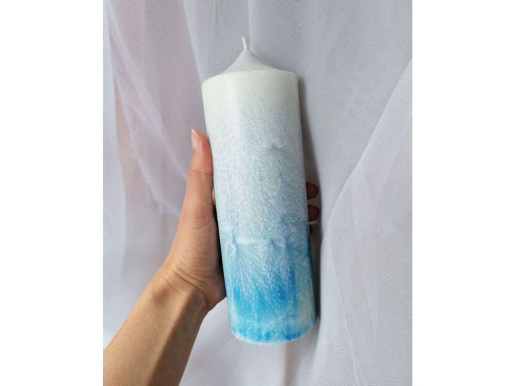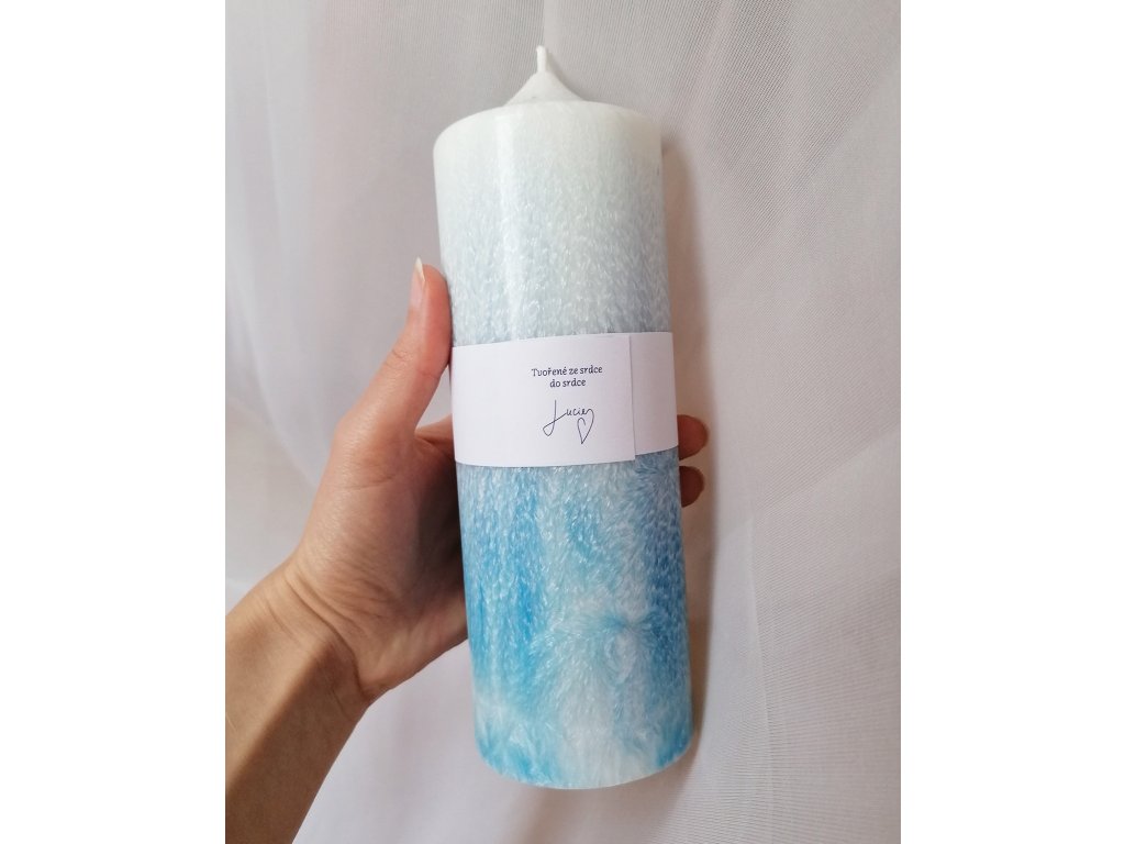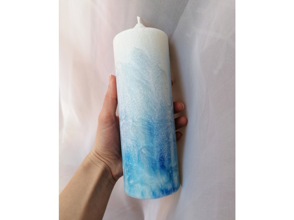 Jako pohled na nebe, na zpěněné moře. Klid a mír. U těchto svíček si velmi užívám celý proces, protože je na něj díky průhledným formám úžasně vidět. A já se zamilovávám, s každou další svíčkou. Chodím okolo, obdivuji a kochám se.