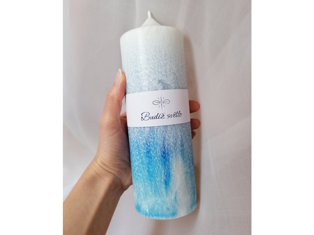 V kombinaci s bílou barvou přináší klid. Každá svíčka je unikátní - texturou, která se vykreslí na jejím povrchu i tím, jak se barvy smíchají. Tento proces nemám pod kontrolou a sama jsem vždy v úžasu, jaká svíčka vznikne.
