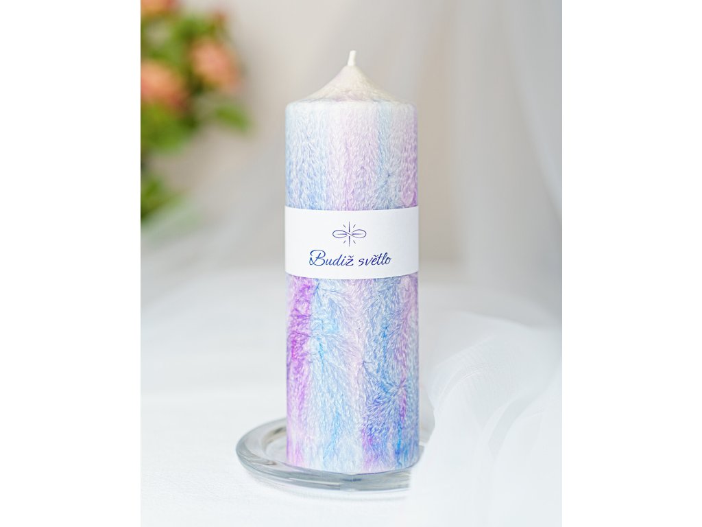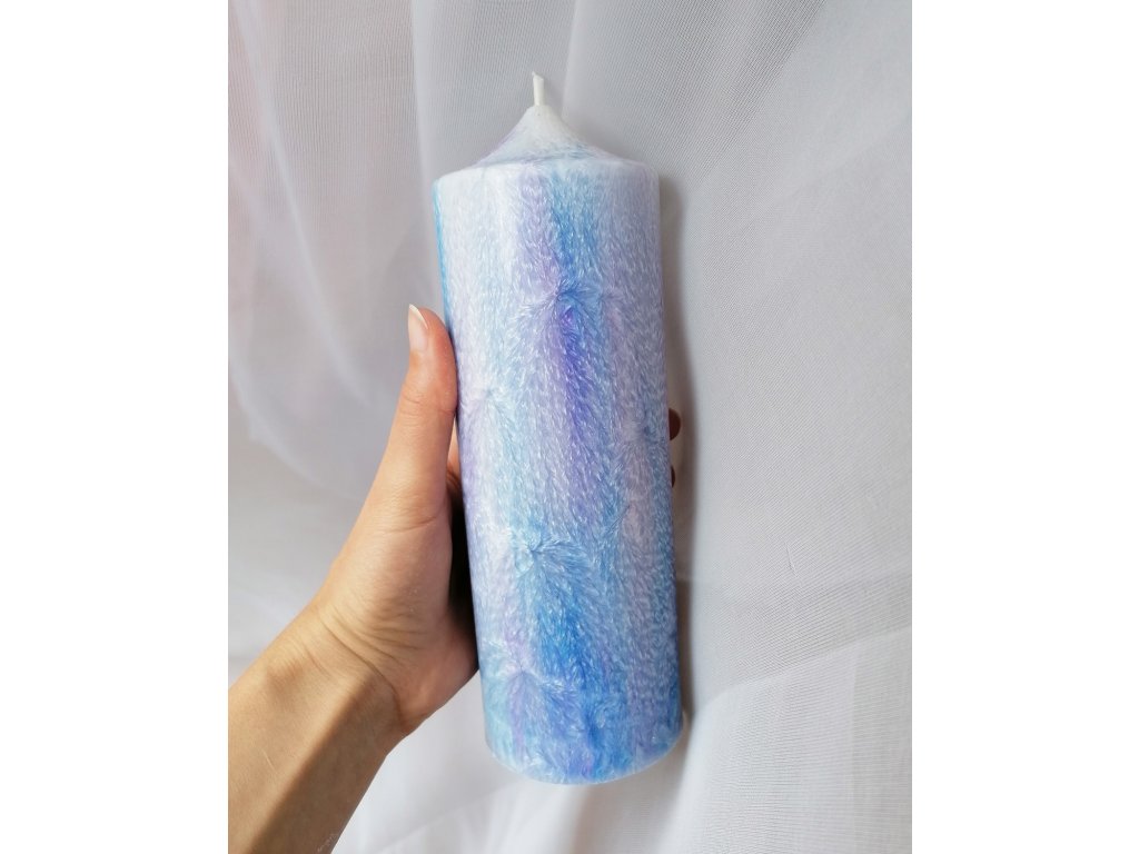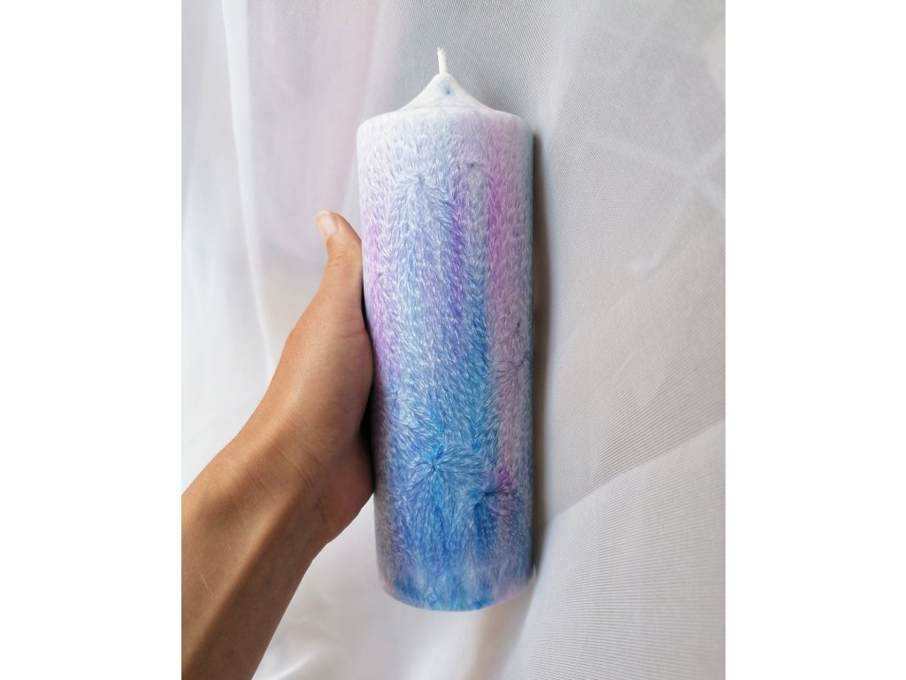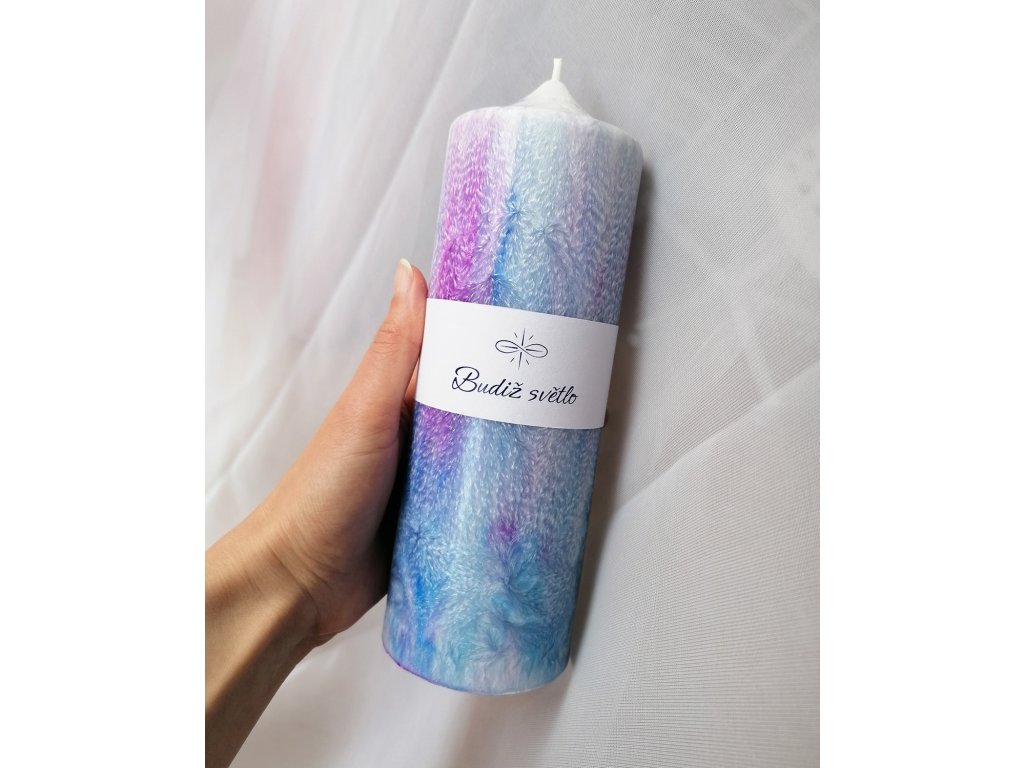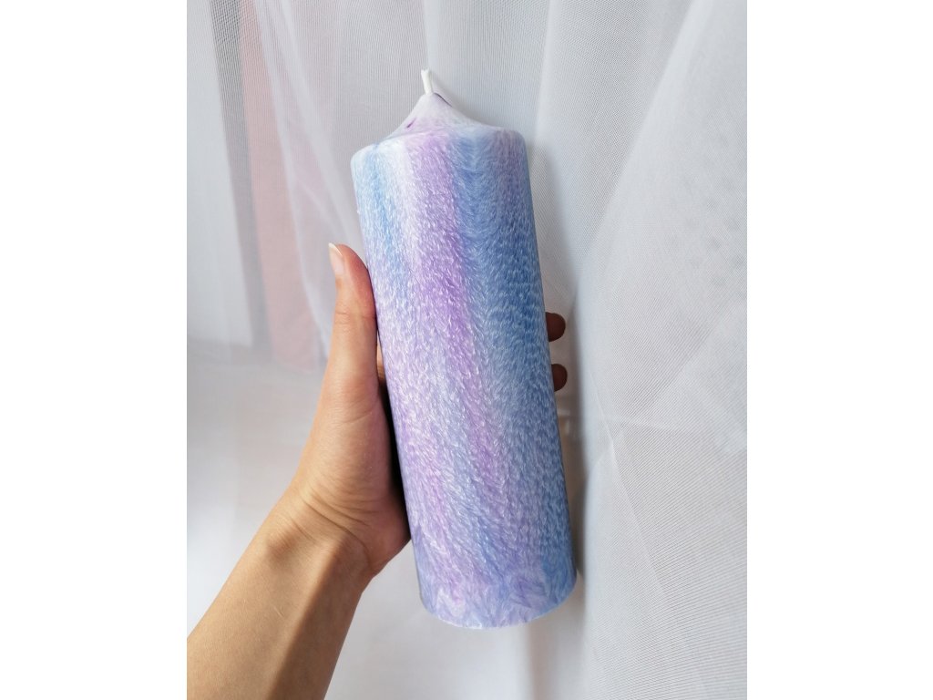 Kombinací růžové a modré barvy vznikají tyto jemné a velmi barevné svíčky. Každá svíčka je unikátní - texturou, která se vykreslí na jejím povrchu i tím, jak se barvy smíchají. Tento proces nemám pod kontrolou a sama jsem vždy v úžasu, jaká svíčka vznikne.