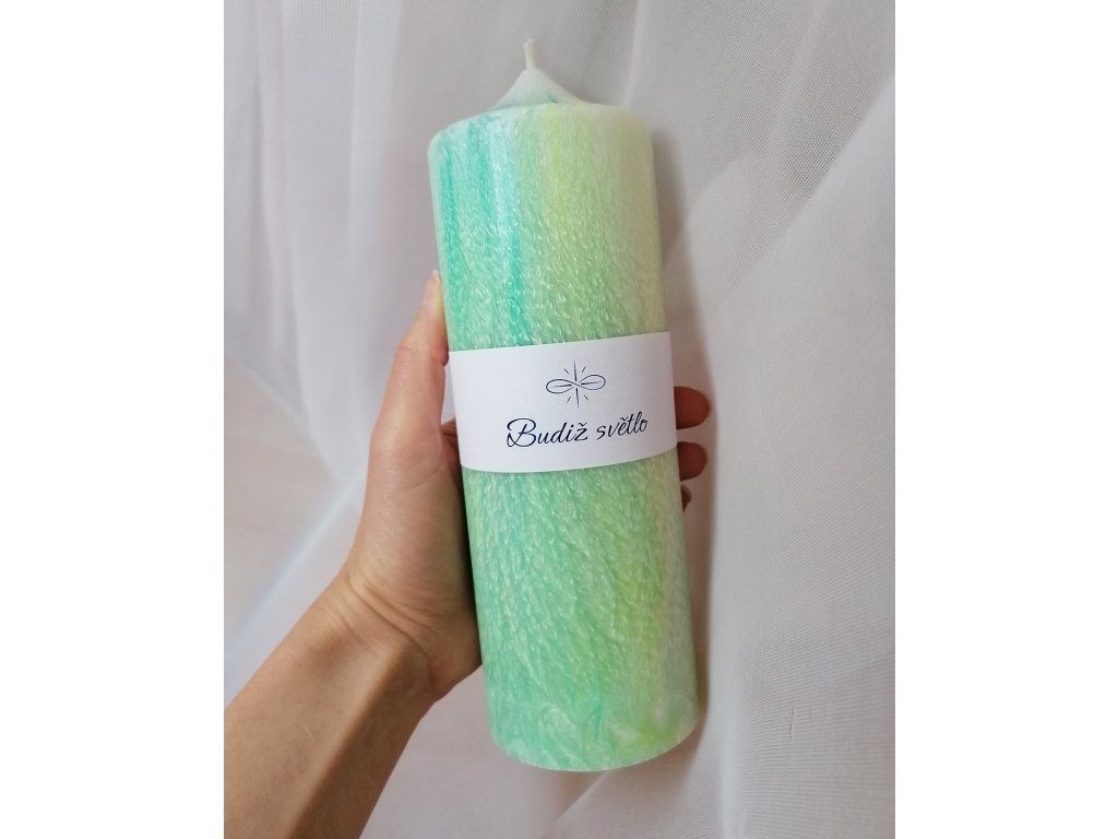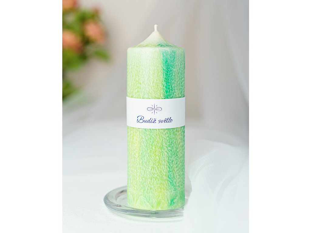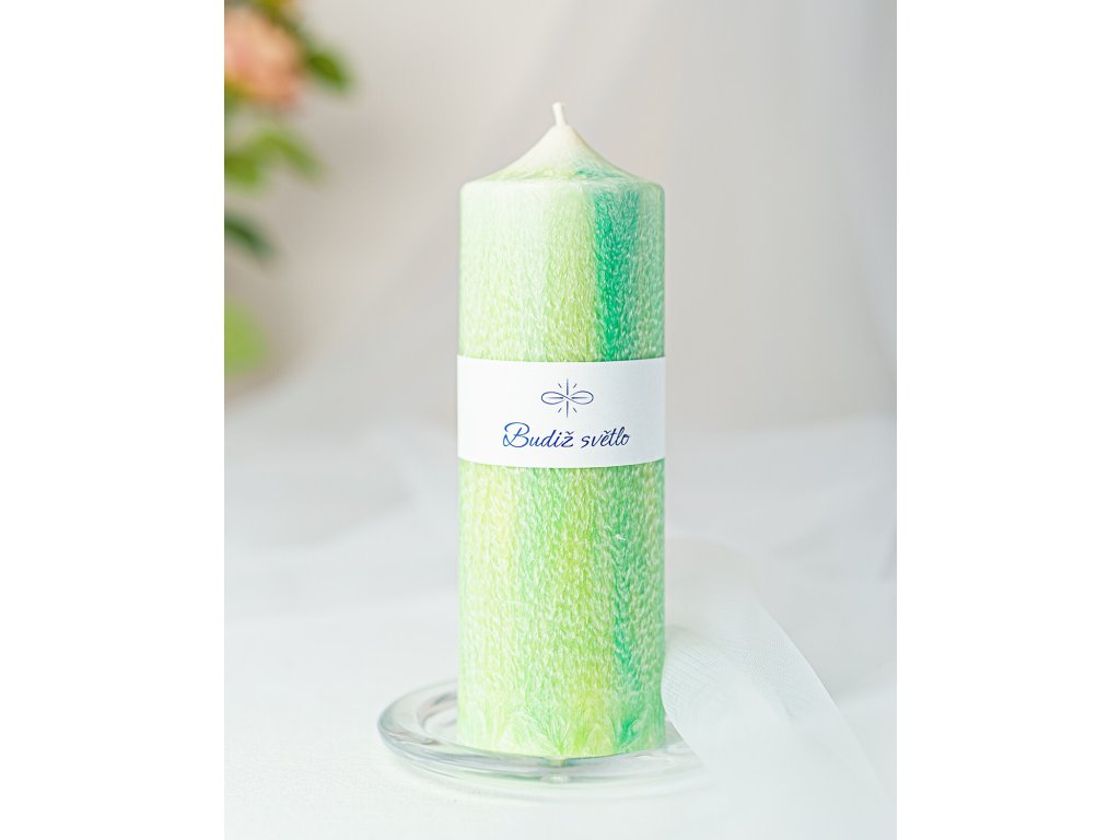 Zelená a žlutá, barva uzdravení a světla. Jejich smícháním vznikají jemné tóny a odstíny. Svíčka má tvar do špičky a silnější průměr, vosk po špičce neztéká, tvoří si okolo sebe jezírko a postupně prohoří až do plné šíře svíčky.