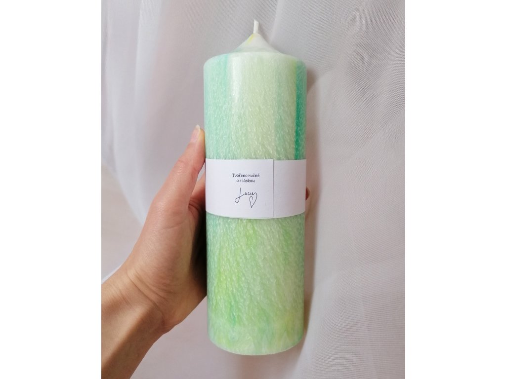 To jsou pro mě právě tyto dvě barvy, které se ve svíčce potkávají - žlutá a zelená. Každá svíčka je unikátní - texturou, která se vykreslí na jejím povrchu i tím, jak se barvy smíchají. Tento proces nemám pod kontrolou a sama jsem vždy v úžasu, jaká svíčka vznikne.